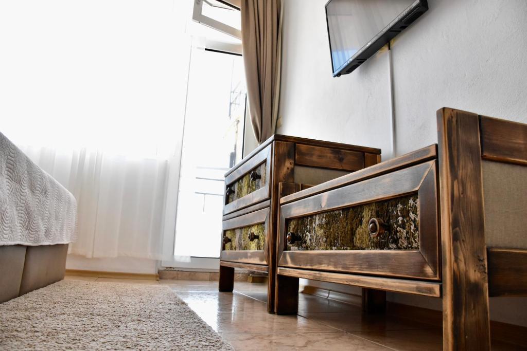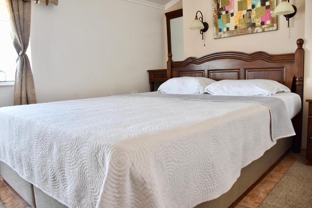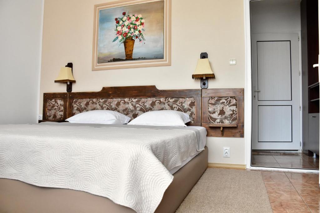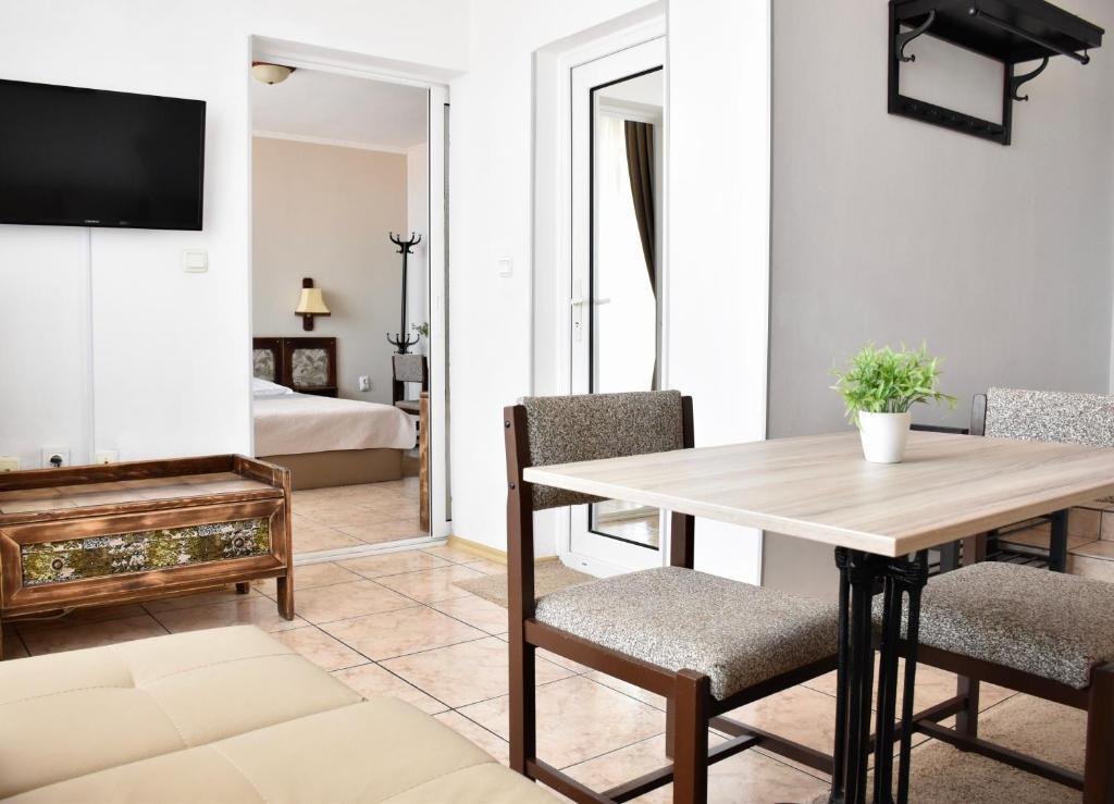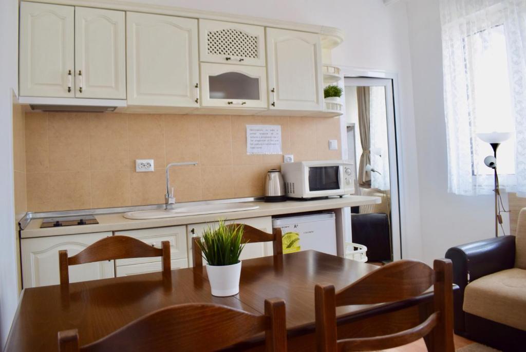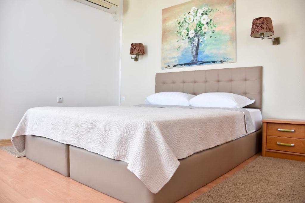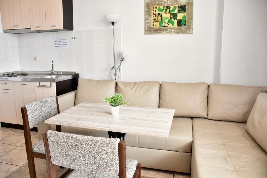 Отдыхали с семьей в июле 2019. Наше пребывание в этом мини отеле длилось 2 недели потому, он для нас стал родным домом, но я попытаюсь быть объективной. Мы очень волновались, что для семьи из 5ти челевек свадебные аппартаменты (именно их нам посоветовала хозяйка по телефону) будут тесноваты. Но все было очень просторно. Вид - невероятный! 2 балкона. На кухне есть все мелочи, а если чего-то нет, вам все принесут. Подушек целый арсенал - от почти плоской, до такой, что почти стоя спишь )). Постели чистые, полотенец хватало. Мебель нормальная. Тяжело выдвигались ящики, но жить можно. Матрасы очень мягкие, черезчур. У мужа болела спина. У кого проблемы с этим - учитывайте. Я бы настоятельно рекомендовала хозяевам поменять электрочайник, потому что нам 2 недели пить чай со вкусом дёшевого пластика было весьма неприкольно. Ну и то, что лично меня крайне напрягало. 1. Несливаемая вода в туалетной комнате, она же ванная, она же душевая. Значит в полу слив. Возле него - унитаз, умывальник и эта вода после душа стоит по щиколотку, пока уборщица не придет на уборку. Это настоящий треш! 2е детей, которые перед походом в туалет обувались. Если они забывали разбуваться, то сразу же падали на плитке, потому что обувь была мокрая. Старшый так упал однажды!!! Там межкомнатные двери - пластиковые, с порожками. Так малой о такой порог колено разбил, что аж хрящ оголился. Короче, надо срочно что-то с этим предпринимать - с несливаемой водой и скользкой плиткой. Постелите везде ковролин. Потому что с ванной там вариантов 0, не переделаешь или будет очень дорого. 2. Уборщицы. Ну... как бы да... В Болгарии я 10й раз!! Всегда отдыхаем в гостинницах, ни разу не снимали квартиру. Это впервые мне попались такие нестандартные для Болгарии ) горничные. Во-первых, их всегда тянуло убирать, там, где не надо - поперекладывать продукты, протереть стол, хоть с этим у нас было идеально. Но помыть пол или вымокать ту же воду в этой ужасной ванной комнате - это надо было просить. Ну и они после просьб обижались, входили без стука или хлопали дверью. Это нормально? Спасибо хозяйке, что помогла с выбором комнаты. Но, когда мы приехали, мне всегда казалось, что мы ее напрягаем. Она всегда была типа на нервах или уставшая, не знаю. Не чувствовала я ни радушия, ни приветливости. Хозяин более располагающий, но тоже больше ла-ла на словах. Паркоместо у нас было. И оно было рядом. Подыдожу. Отдых впринципе мне понравился. Есть ньюансы. Но больше плюсов. Если владельцы прислушаются и решат вопрос с чайником, проведут пару тренингов своему персоналу ну и с ванной придумают что-то, то смело буду рекомендовать ). А пока - решать вам.