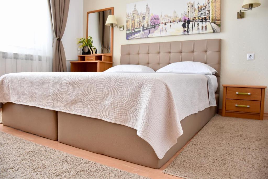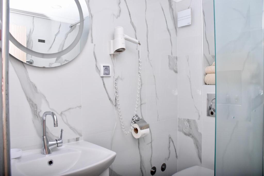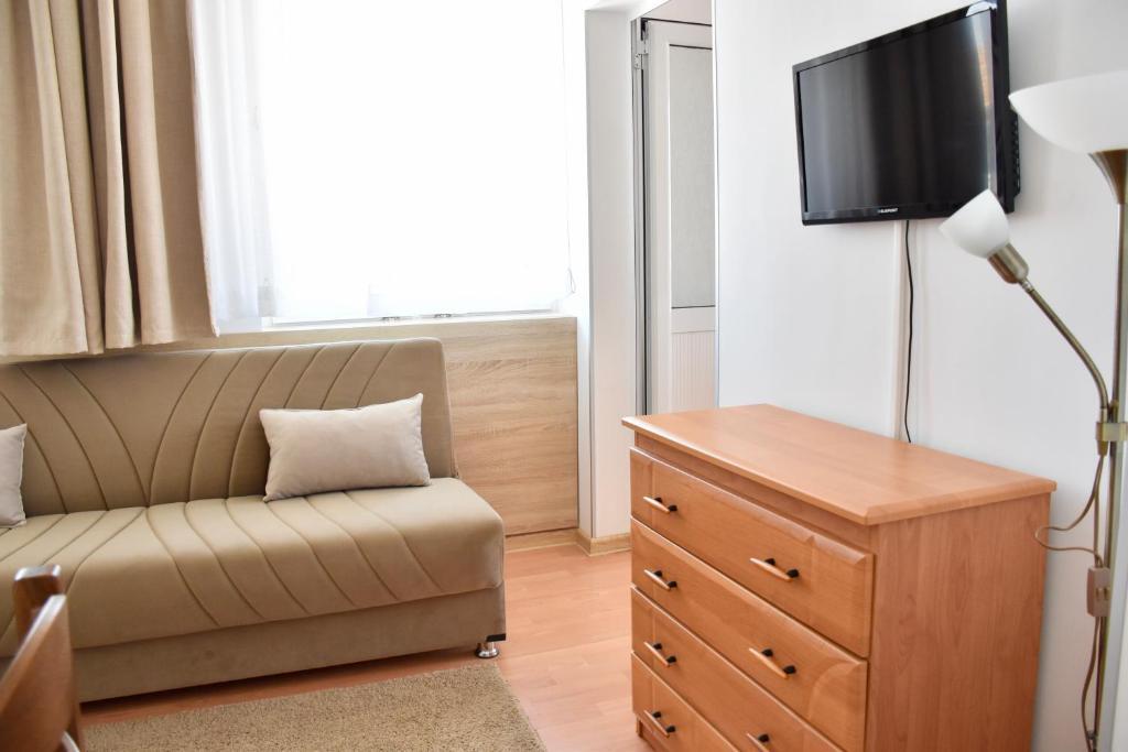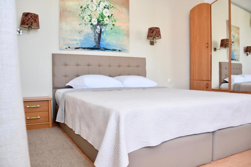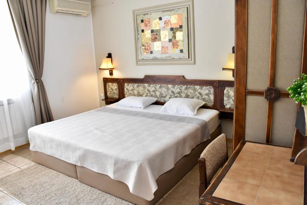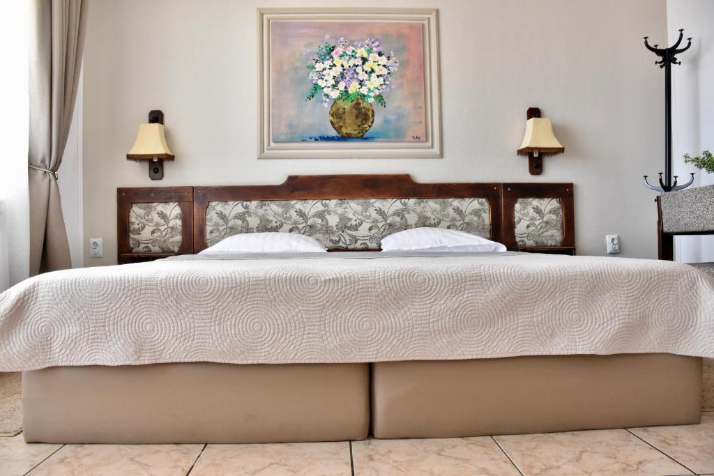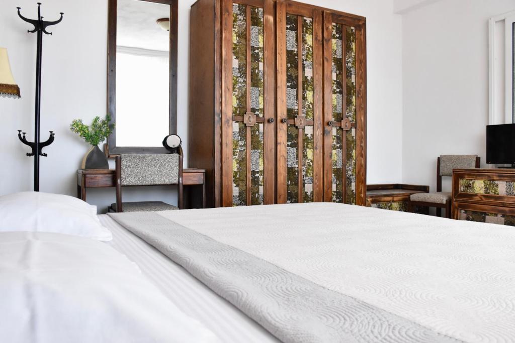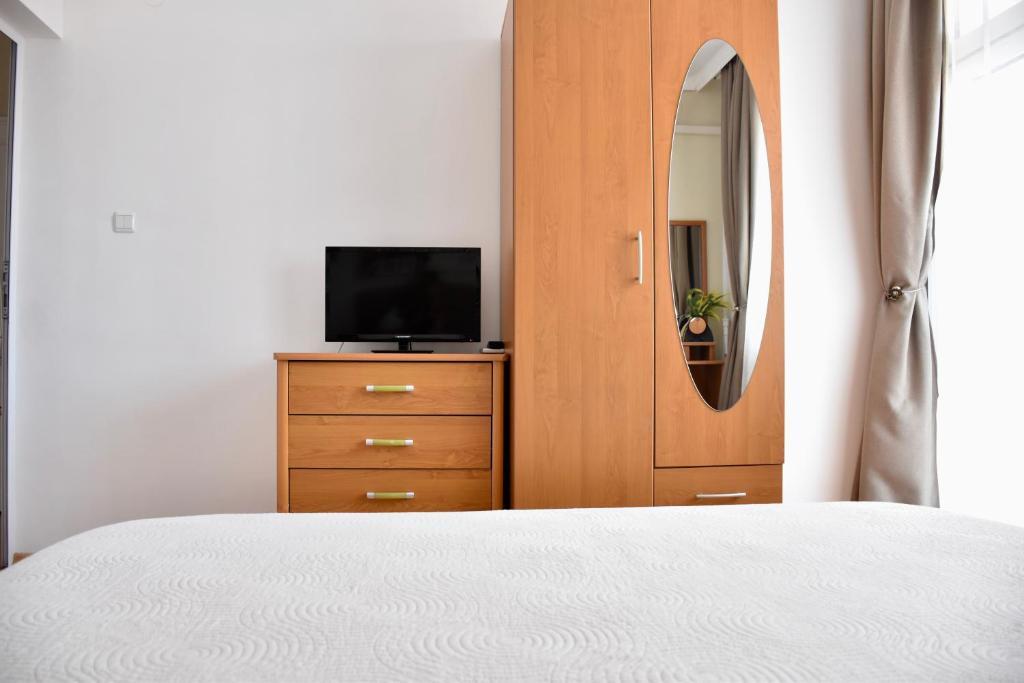 Отдыхали с семьей в июле 2019. Наше пребывание в этом мини отеле длилось 2 недели потому, он для нас стал родным домом, но я попытаюсь быть объективной. Мы очень волновались, что для семьи из 5ти челевек свадебные аппартаменты (именно их нам посоветовала хозяйка по телефону) будут тесноваты. Но все было очень просторно. Вид - невероятный! 2 балкона. На кухне есть все мелочи, а если чего-то нет, вам все принесут. Подушек целый арсенал - от почти плоской, до такой, что почти стоя спишь )). Постели чистые, полотенец хватало. Мебель нормальная. Тяжело выдвигались ящики, но жить можно. Матрасы очень мягкие, черезчур. У мужа болела спина. У кого проблемы с этим - учитывайте. Я бы настоятельно рекомендовала хозяевам поменять электрочайник, потому что нам 2 недели пить чай со вкусом дёшевого пластика было весьма неприкольно. Ну и то, что лично меня крайне напрягало. 1. Несливаемая вода в туалетной комнате, она же ванная, она же душевая. Значит в полу слив. Возле него - унитаз, умывальник и эта вода после душа стоит по щиколотку, пока уборщица не придет на уборку. Это настоящий треш! 2е детей, которые перед походом в туалет обувались. Если они забывали разбуваться, то сразу же падали на плитке, потому что обувь была мокрая. Старшый так упал однажды!!! Там межкомнатные двери - пластиковые, с порожками. Так малой о такой порог колено разбил, что аж хрящ оголился. Короче, надо срочно что-то с этим предпринимать - с несливаемой водой и скользкой плиткой. Постелите везде ковролин. Потому что с ванной там вариантов 0, не переделаешь или будет очень дорого. 2. Уборщицы. Ну... как бы да... В Болгарии я 10й раз!! Всегда отдыхаем в гостинницах, ни разу не снимали квартиру. Это впервые мне попались такие нестандартные для Болгарии ) горничные. Во-первых, их всегда тянуло убирать, там, где не надо - поперекладывать продукты, протереть стол, хоть с этим у нас было идеально. Но помыть пол или вымокать ту же воду в этой ужасной ванной комнате - это надо было просить. Ну и они после просьб обижались, входили без стука или хлопали дверью. Это нормально? Спасибо хозяйке, что помогла с выбором комнаты. Но, когда мы приехали, мне всегда казалось, что мы ее напрягаем. Она всегда была типа на нервах или уставшая, не знаю. Не чувствовала я ни радушия, ни приветливости. Хозяин более располагающий, но тоже больше ла-ла на словах. Паркоместо у нас было. И оно было рядом. Подыдожу. Отдых впринципе мне понравился. Есть ньюансы. Но больше плюсов. Если владельцы прислушаются и решат вопрос с чайником, проведут пару тренингов своему персоналу ну и с ванной придумают что-то, то смело буду рекомендовать ). А пока - решать вам.