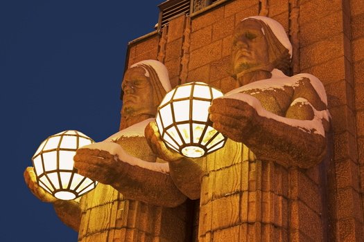 Интересно здание железнодорожного вокзала — его вход украшают атланты. Напротив вокзала находится Художественный музей Атенеум с большим собранием произведений искусства Финляндии. Любители музеев побывают в Национальном музее Финляндии, Музее современного искусства «Киасма», Музее под открытым небом на острове Сеурасаари.