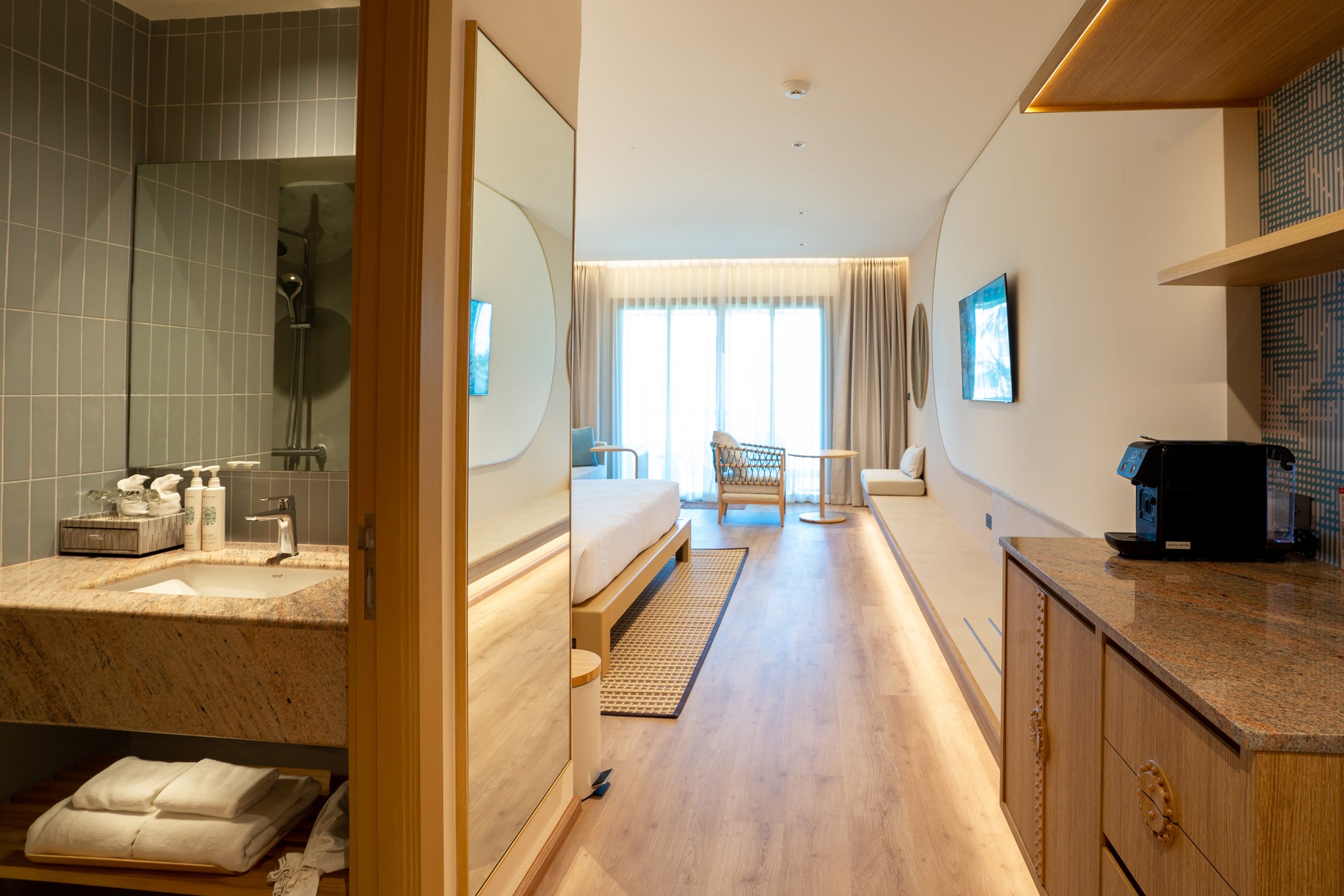 Приехали в Отель в Третий раз. Много путешествуем и когда приезжаем в пятерку как минимум в третий раз ты уже любимый клиент ... со всеми вытекающими... Первый раз в этом отеле 2023году .. эйфория.... отличный пляж ... погода супер(декабрь). Солнце Море.Второй раз 2024 начинаем замечать недостатки... пишем отзыв... Пришла делегация администрации.. Пожалуйста удалите плохой отзыв... все исправим.. вам преференции,бесплатный ужин.... и тд. и тп..... Удалил. Приехали 2025 году в очередной третий раз. А нас и не очень то ждали... номер дали не тот который заказали (заказывали с одной большой кроватью ) а дали с двумя...Мы попросили поменять. Нам сказали завтра все поменяем и даже апгрейд....сделаем.....ага...сейчас.... соседний дали с одной большой кроватью как и заказывали. Ну да ладно.. Постоянных клиентов не особо любите и ладно. Мы приезжаем за морем,солнцем, красотой природы. За 3 года мало что меняется. Но отдать должное что ремонтируют корпуса на первой линии .Цена на отель приличная но недостатки есть. После пляжа ноги помыть? Лейки еле работают ,постоянно забиваются.Очень большая проблема что персонал не смотрит что на лежаках у бассейна курят, и электронные сигареты тоже. Хотя много отдыхающих с маленькими детьми. Приходится делать самим замечания. Ни разу не видели что бы работник отеля сделал замечание курильщикам. В номере душ( это лейка в ванной а нет отдельного душа) при моих 178 только с наклоненной головой можно помытся. А если рост 180 и более садитесь на корточки... ( а что бы не поменять шланги -подлиннее поставить).из под ванной, когда принимаешь душь подтекает вода. 3 раза жили и всегда бежит,во всех номеоах???Может это так задумано?. На пляже собирается достаточно много народа не из отеля. Приходят с соседних отелей и гестов ,потому что пляж здесь самый лучший.Но за 10 дней нашего прибывания здесь,пляж ни разу не убирали. Ни кто... .Завтрак вкусный..хотя однообразный . девочки на завтраках конечно постоянно подходят, предлагают помощь ..молодцы.Номера для Тая убирают хорошо. Кровать отличная,белье меняют каждый день.В номере поставили осушитель это отлично,в прошлый раз постоянно потели окна,а сейчас все сухо. Конечно песонал старается, улыбаются, здороваются. Хороший отель, но 5 звезд нужно поддерживать. И постоянных клиентов любить Жили в номер делюкс в 4 корпусе.